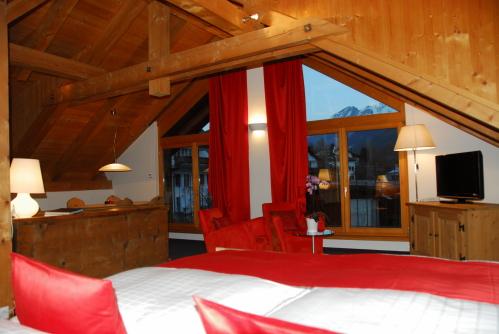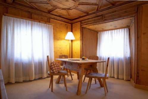 Уютный ресторан, обшитый деревянными панелями, сервирует изысканные блюда швейцарской кухни.