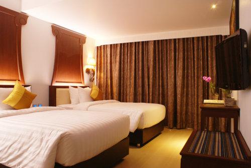 Каждый просторный номер отеля Aiyara Palace оснащен кондиционером, телевизором, телефоном и мини-баром. Частные ванные комнаты номеров оснащены ванными.