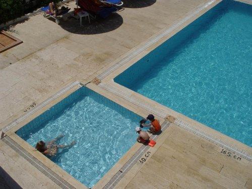 Перед осмотром окрестностей гости могут отдохнуть на шезлонгах у бассейна.