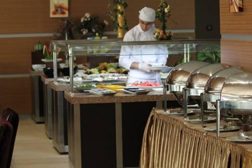 В отеле Boss ежедневно сервируют завтрак, а на ужин гости могут выбирать из большого меню блюд местной и международной кухни. В баре отеля подают напитки до позднего вечера.