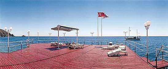 Отель расположен на берегу моря в 1 км. от поселка Текирова, 18 км. от Кемера и 72 км. от аэропорта Анталии.