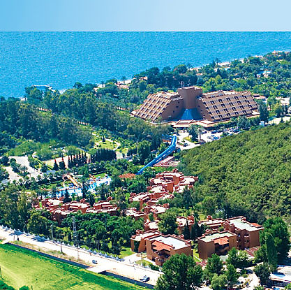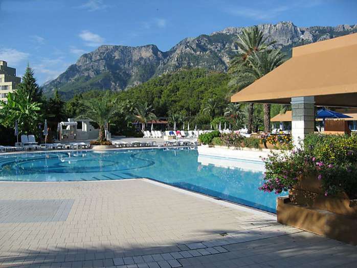 Отель расположен в 48 км. от аэропорта Анталии, в 7 км. от Кемера, в поселке Гейнюк, на самом берегу моря.