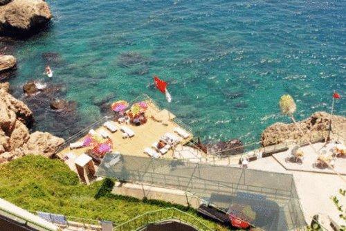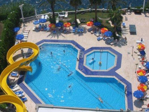 Отель Adonis расположен на берегу Анталии с видом на Средиземное море и предлагает открытый бассейн с водными горками и номера с балконами.